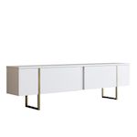 Meuble TV Luxe Or blanc Bois 30x180x50cm, Mélamine, Classique, Bas à poser, rectangulaire..
