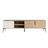 Meuble TV moderne avec option de fixation murale, blanc et chêne, 180 x 49 x 33 cm, panneaux de particules mélaminés, pieds de 16 cm, plusieurs étagères, design scandinave pour salons élégants.Meuble TV en bois Tarz Donnez du caractère à votre décoration avec ce meuble tv pensé pour allier style et