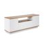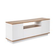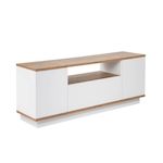 Meuble TV moderne avec 3 portes à ouverture par simple pression - Dimensions : 180 x 44 x 44 cm - Epaisseur 18 mm - Plateau marron.