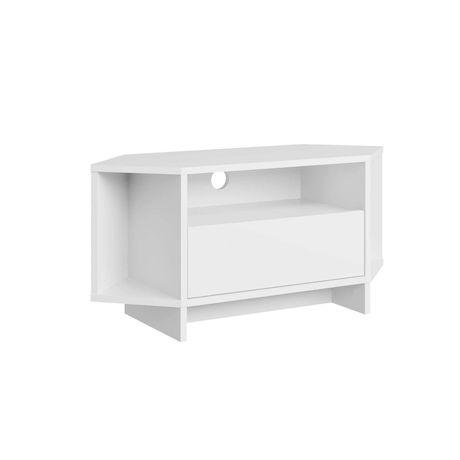 Meuble TV hexagonale en bois - Dimensions : 95 x 35 x 45 cm - Epaisseur 18 mm -Capacité de charge jusqu'à 10 kg - Hauteur des pieds : 9 cm - Blanc.Meuble TV en bois Viva Donnez du caractère à votre décoration avec ce meuble tv pensé pour allier style et praticité. Son design soigné et ses finitions