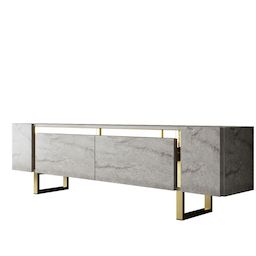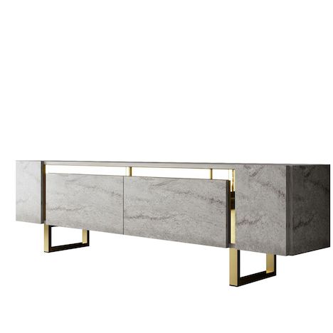 Meuble TV Yildiz Travertin Or Bois 30x180x50cm, Mélamine, Classique, Bas à poser, rectangulaire..