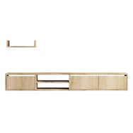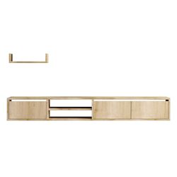 Meuble TV suspendu avec étagère murale en bois Heka - 180 x 30 x 25 cm - Beige