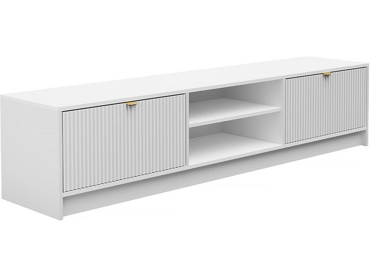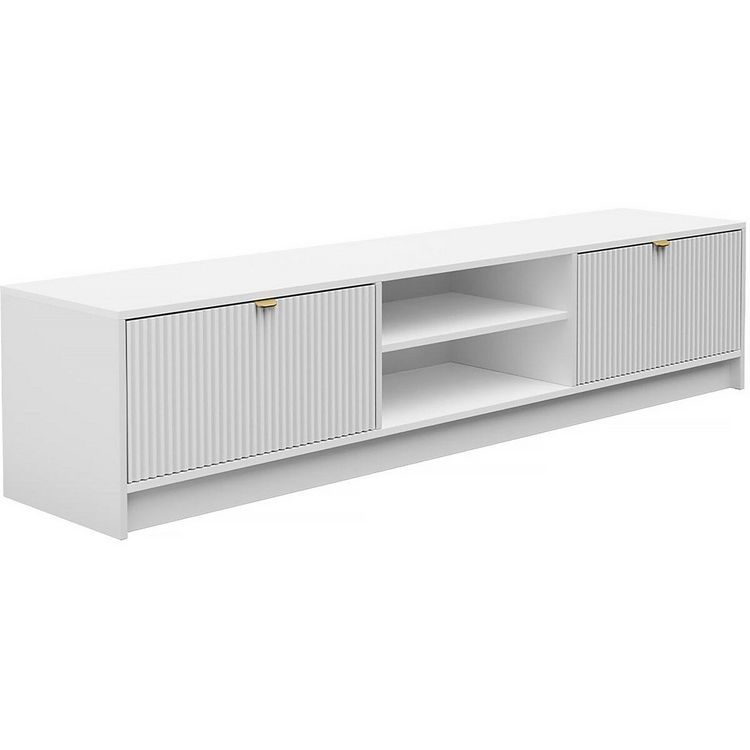 En savoir +Meuble TV Tireno - 180 cm X 40 cm X 40 cm - 2 tiroirs - 2 compartiments - Blanc.