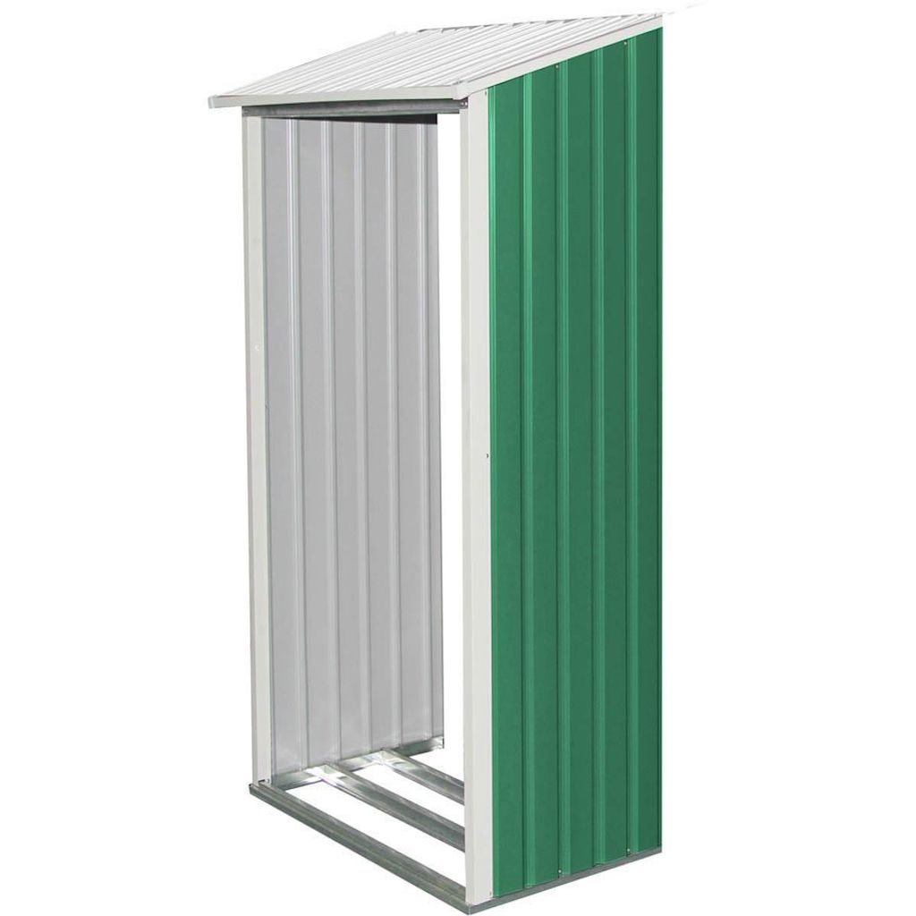 Option abri-bûche en métal pour abri de jardin ROSAS - 2.71 m² - En acier galvanisé - Hors tout : 1.27 x 0.67 x 1.6 m - Traité anti UV et anti rouille.