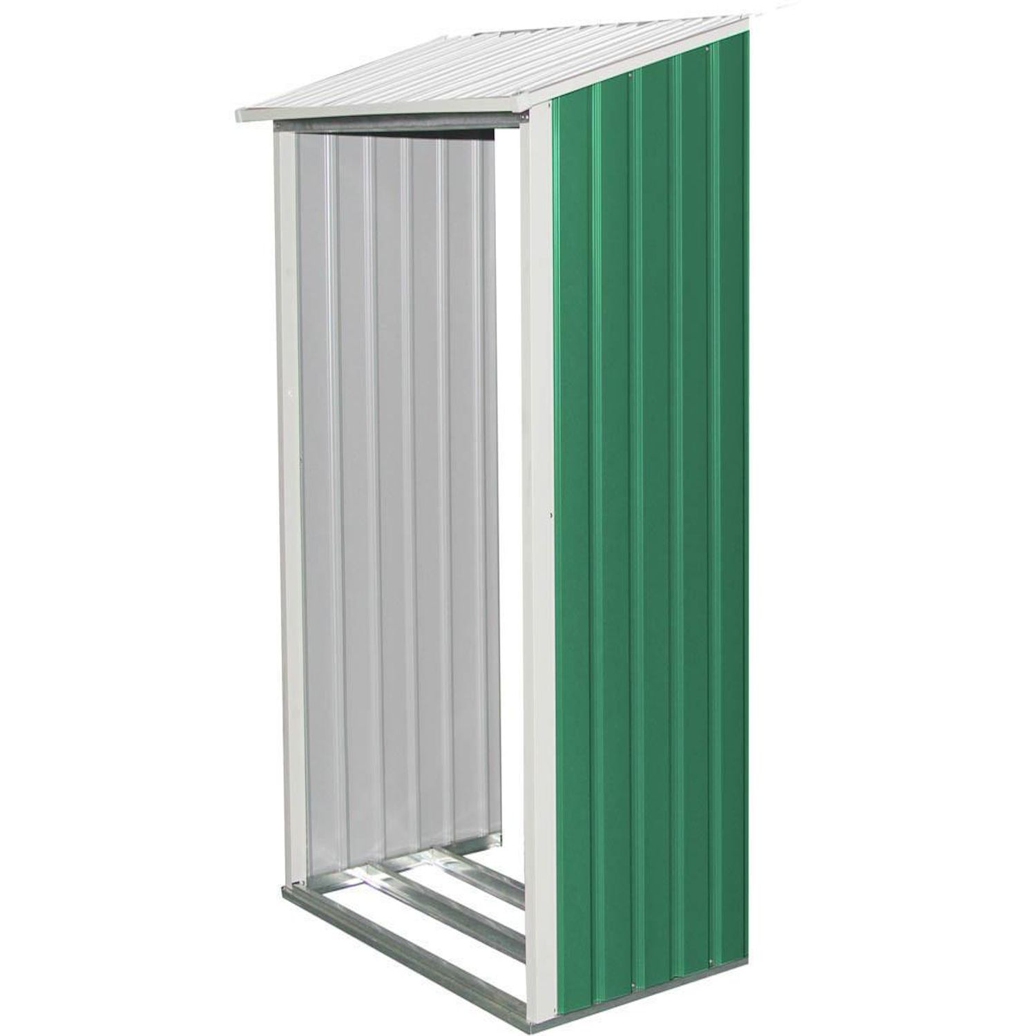 En savoir +Option abri-bûche en métal pour abri de jardin ROSAS - 2.71 m² - En acier galvanisé - Hors tout : 1.27 x 0.67 x 1.6 m - Traité anti UV et anti rouille.