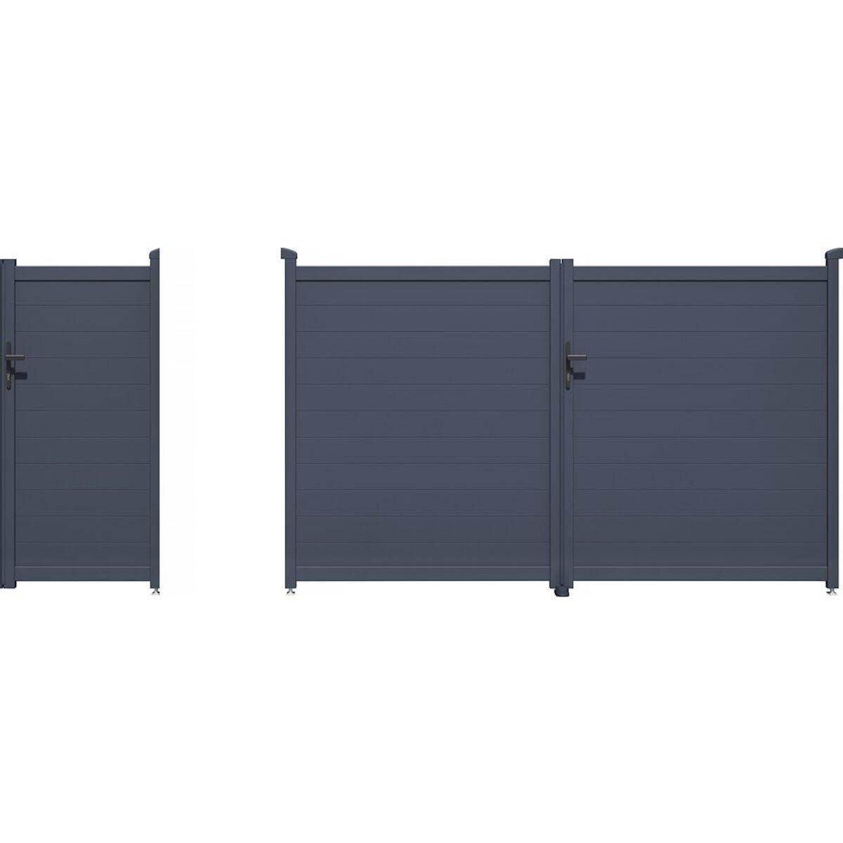Pack portail + portillon Marc 349,5 x 155,9 cm et 101,2 x 155.9 cm - Gris - Aluminium..