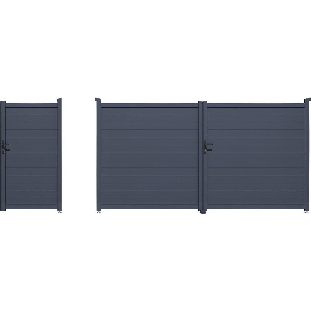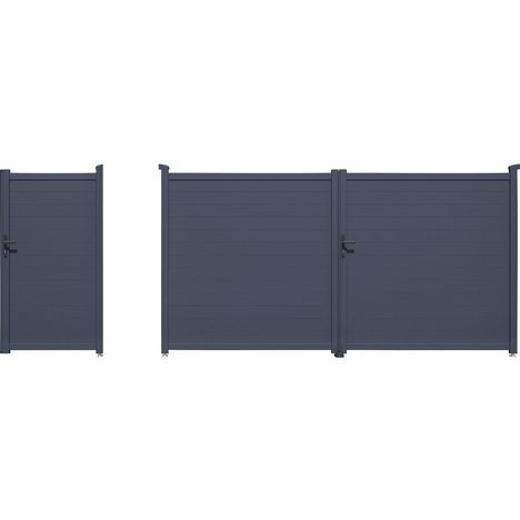 Pack portail + portillon Marc - 349,5 x 180,9 cm et 101.2 x 180.9 cm - Gris - Structure en aluminium..