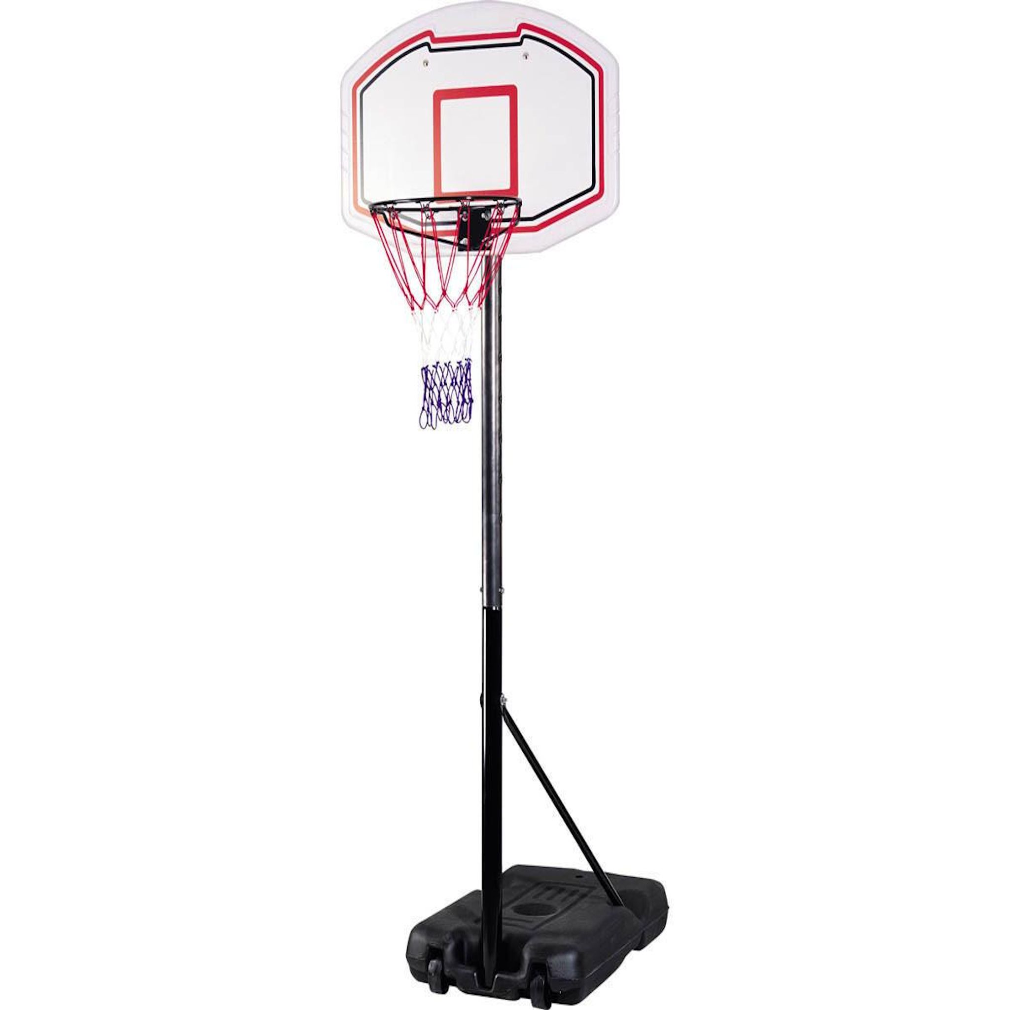 Panier de basket Michael - Panneau en polypropylène à haute résistance, 90 x 60 cm avec anneau en métal diamètre 46 cm, filet tricolore en nylon et kit de fixation inclus , blanc et rouge - Panier en métal, avec système téléscopique réglable 192 - 260 cm de hauteur, diamètre 76mm, épaisseur 0.2 mm - Base en vinyle. Et lestable avec du sable (23 kg) ou de l'eau (15 kg) et équipée de 2 roues intégrées.