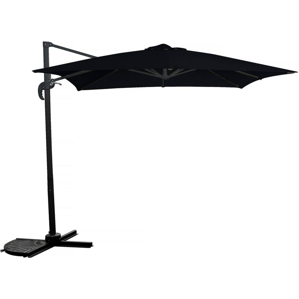 Parasol jardin déporté Soleil - Carré - Dimensions : 2.5 x 2.5 m - Noir - Structure : aluminium, acier (pieds) - Matière de la toile : polyester - Peut basculer - Peut pivoter à 360° - Anti-UV (30+) - Anti-rouille - Résiste à l'eau -.Parasol jardin déporté PARASOL DÉPORTÉ GRANDE TAILLE : parasol