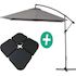 Parasol jardin déporté - 3 x 3 m - Structure en aluminium - Toile en polyester - Gris - Avec dalles à lester.