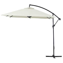 Parasol jardin déporté - Carré - 3 x 3 m - Aluminium - Toile polyester 160 gr/m2 - Ecru - Pied en croix (Dalle non incluses).