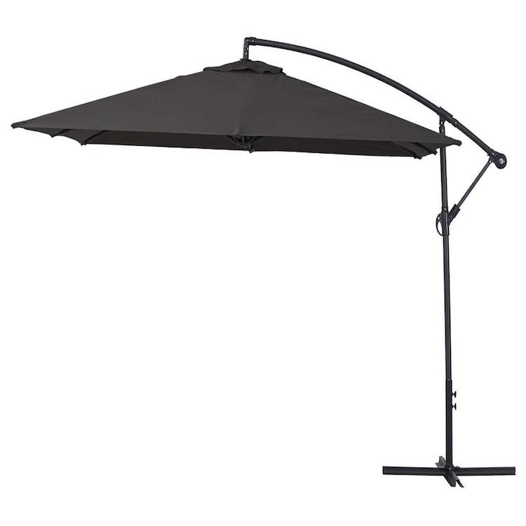 En savoir +Parasol jardin déporté - Carré - 3 x 3 m - Aluminium - Toile polyester 160 gr/m2 - Noir - Pied en croix (Dalle non incluses).