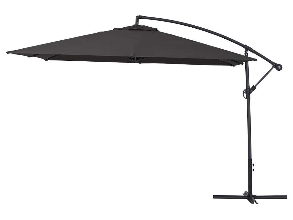 Parasol jardin déporté - Carré - 3 x 3 m - Aluminium - Toile polyester 160 gr/m2 - Noir - Pied en croix (Dalle non incluses).Parasol jardin déporté Ilios 3 Aujourd'hui, le parasol a considérablement évolué avec l'apparition sur le marché du parasol déporté. Pour se protéger efficacement du solei