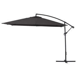 Parasol jardin déporté - Carré - 3 x 3 m - Aluminium - Toile polyester 160 gr/m2 - Noir - Pied en croix (Dalle non incluses).