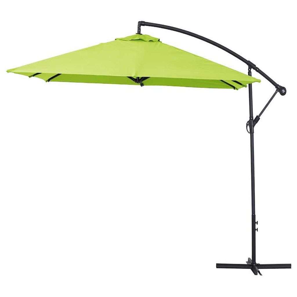 Parasol jardin déporté Ilios 3 - Carré - 3 x 3 m - Aluminium - Toile polyester 160 gr/m2 - Vert - Pied en croix (Dalle non incluses).Parasol jardin déporté Ilios 3 Aujourd'hui, le parasol a considérablement évolué avec l'apparition sur le marché du parasol déporté.Pour se protéger efficacement du