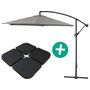 Parasol jardin déporté - Ø 3 m - Structure en aluminium - Toile en polyester - Gris - Dalles à lester incluses.. : Parasol de jardin déporté - Dia.: 3 mètres - Sa structure en aluminium lui assure solidité et résistance à la corrosion et sa toile en polyester a été traitée anti-UV et résiste à l'eau