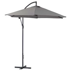 Parasol jardin déporté Ilios Aujourd'hui, le parasol a considérablement évolué avec l'apparition sur le marché du parasol déporté.Pour se protéger efficacement du soleil et des petites averses nous vous proposons le parasol déporté Ilios. Il est l'accessoire indispensable de votre jardin ou de votre térasse.Sa structure en aluminium lui donne une durée de vie et une résistance maximales aux conditions extérieures. Sa toile en polyester garantit un ombrage efficace lui permettant de filtrer les rayons de soleil. Parasol jardin déporté Ilios - Rond - Ø 3 m - Toile polyester 160 gr/m2 - Aluminium - Gris .Descriptif: Parasol jardin déporté Ilios - Structure en aluminium qui résiste à la corrosion - Toile en polyester, traitée anti-UV - Pour un confort idéal, vous avez la possibilité de régler la hauteur de votre parasol, son angle d'inclinaison (avec la poignée/manivelle) et sa rotation jusqu'à 360° - Afin de conserver votre parasol le plus longtemps possible, n'hésitez pas à le fermer lorsque vous ne l'utilisez pas et à le ranger à l'abri dans un endroit sec et/ou sous une housse de protection