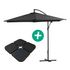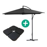 Parasol jardin déporté - Ø 3 m - Structure en aluminium - Toile en polyester - Noir - Avec dalles à lester..