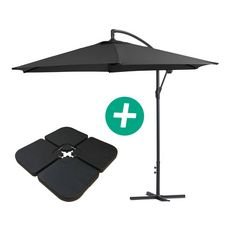 : Parasol de jardin déporté - Dia.: 3 mètres - Sa structure en aluminium lui assure solidité et résistance à la corrosion et sa toile en polyester a été traitée anti-UV et résiste à l'eau. Le lot de 4 lest à remplir inclus est idéal pour bien fixer le mât de ce parasol déporté. Il suffit d'en positionner 4 sur le pieds en croix et de les remplir. A remplir avec de l'eau ou du sable : le poids de chaque pièce sera alors de 16 kg avec de l'eau ou de 25 kg avec du sable - Coloris gris anthracite.- Afin de conserver votre parasol le plus longtemps possible, n'hésitez pas à le fermer lorsque vous ne l'utilisez pas et à le ranger à l'abri dans un endroit sec et/ou sous une housse de protection en cas d'intempéries.
