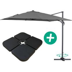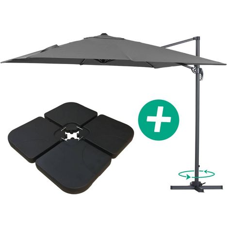 En savoir +Parasol jardin déporté - Structure aluminium - 3 x 3 m - Gris - Toile polyester 220 gr/m2. - Dalles incluses..