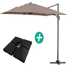 Parasol jardin déporté - Structure aluminium - 3 x 3 m - Taupe- Toile polyester 220 gr/m2. - Dalles incluses..