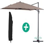 Parasol jardin déporté - Structure aluminium - 3 x 3 m - Taupe - Toile polyester 220 gr/m2 + Housse de protection.