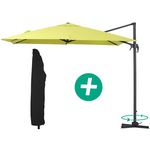 Parasol jardin déporté Alu Sun 3 - Carré - 3 x 3 m - Vert + housse de protection