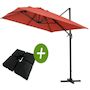 Parasol jardin déporté Alu Sun 4 - Rectangle - 3 x 4 m - Rouge - Dalles à lester incluses