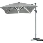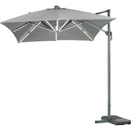 Parasol jardin déporté avec éclairage LED - Structure aluminium - 3 x 3 m - Gris - Toile polyester 200 gr/m2. Pied non inclus..