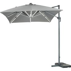 Profitez de vos soirées d'été avec le parasol SUN 3 LUX.Avec son éclairage LED, notre parasol vous permet de prolonger vos diner dans une ambiance agréable. 100% autonome, les lampes LED sont alimentées par une cellule solaire.Inclinable et rotatif à 360°, vous pouvez très facilement l'ajuster pour vous protéger du soleil tout au long de la journée.Avec sa structure en aluminium et sa toile traitée anti-UV et anti-décoloration, vous disposez d'un parasol élégant et robuste que vous utiliserez de nombreuses années dans votre jardin. Parasol jardin déporté avec éclairage LED - Structure aluminium - 3 x 3 m - Gris - Toile polyester 200 gr/m2. Pied non inclus. .Descriptif: Parasol jardin déporté LED Alu Sun 3 Luxe - Carré