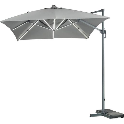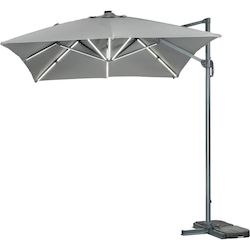Parasol jardin déporté avec éclairage LED - Structure aluminium - 3 x 3 m - Gris - Toile polyester 200 gr/m2. Pied non inclus..Profitez de vos soirées d'été avec le parasol SUN 3 LUX.Avec son éclairage LED, notre parasol vous permet de prolonger vos diner dans une ambiance agréable. 100% autonome, l