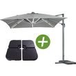 Parasol jardin déporté avec éclairage LED Sun 3 Luxe - Dimensions : 3 x 3 m - Gris - Carré - Structure : aluminium - Toile : polyester (200 g/m²) - Câble USB pour charge inclus - Dalles lestées incluses.