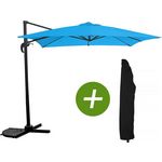 Parasol jardin déporté  Soleil  - Carré - 2.5 x 2.5 m - Bleu + Housse de protection