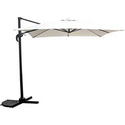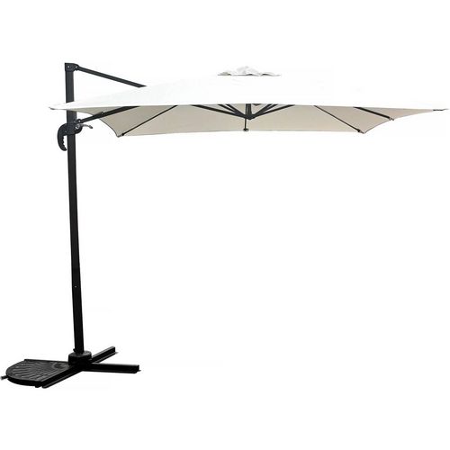 Parasol jardin déporté Soleil - Carré - Dimensions : 2.5 x 2.5 m - Ecru - Structure : aluminium, acier (pieds) - Matière de la toile : polyester - Peut basculer - Peut pivoter à 360° - Anti-UV (30+) - Anti-rouille - Résiste à l'eau - Garantie 1 an.Parasol jardin déporté Soleil PARASOL DÉPORTÉ G