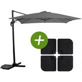 Parasol jardin déporté Soleil - Carré - 2.5 x 2.5 m - Gris + Dalles à lester incluses