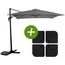 : Parasol déporté - Peut basculer et pivoter à 360° Parasol anti-UV, anti-rouille et résistant à l'eau Parasol garantie 1 an Pied de parasol à remplir avec de l'eau ou du sable jusqu'à 13 kg par dalle - Très facile d'installation.