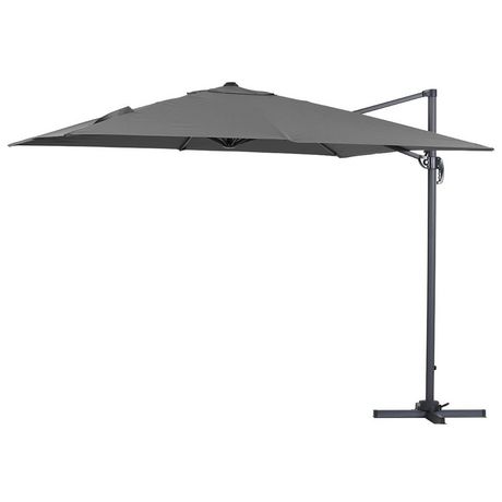 Parasol jardin déporté - Structure aluminium - 3 x 3 m - Gris - Toile polyester 200 gr/m2. Pied non inclus..Parasol déporté Sun 3 Aujourd'hui, le parasol a considérablement évolué avec l'apparition sur le marché du parasol déporté. Pour se protéger efficacement du soleil et des petites averses n