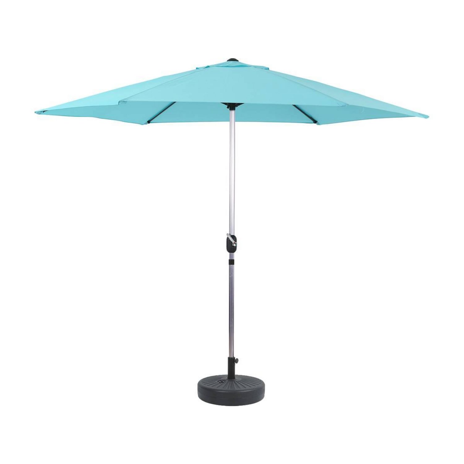 Parasol jardin droit Alu Sol - Rond - Ø 3m - Bleu - Avec pied à lester