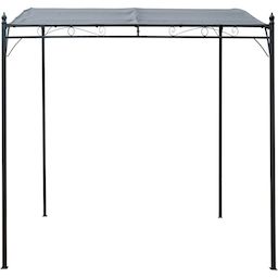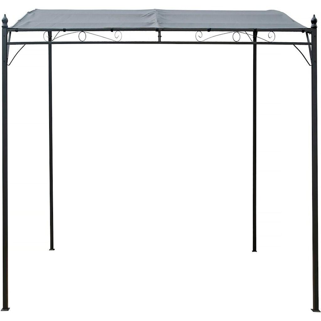 Tonnelle avec toit incliné - Dimensions : 297 x 248 x 248 cm - Traitement anti-uv et antirouille - Résistant à l'eau - Toile grise - Métal - Gris.
