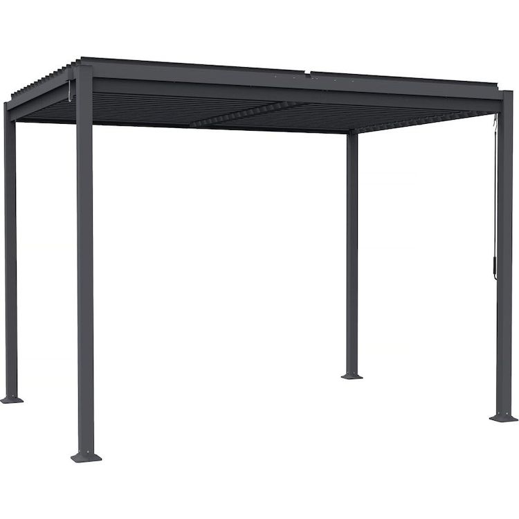 Pergola bioclimatique autoportante avec lames orientables Howard - 3 x 4 m - Gris