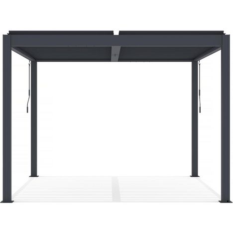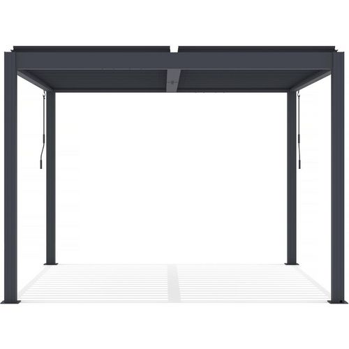 En savoir +Pergola bioclimatique en aluminium - LED intégrée tout autour de la pergola - Dimensions :300 x 300 x 220 cm - Matières : aluminium - Gris foncé.
