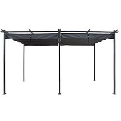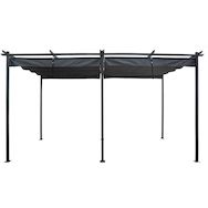 Tonnelle de jardin rectangulaire - Dimensions : 595 x 295 x 232 cm - Toit rétractable - Traitement anti-uv et antirouille - Résistant à l'eau - Anthracite.