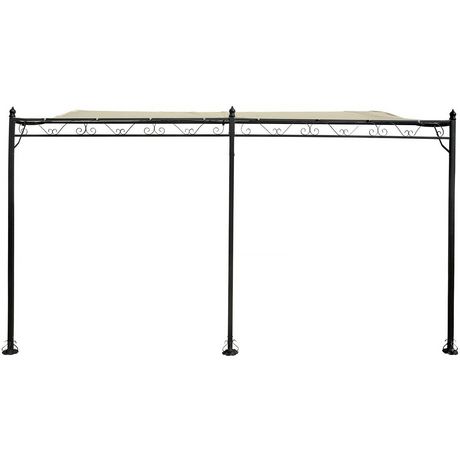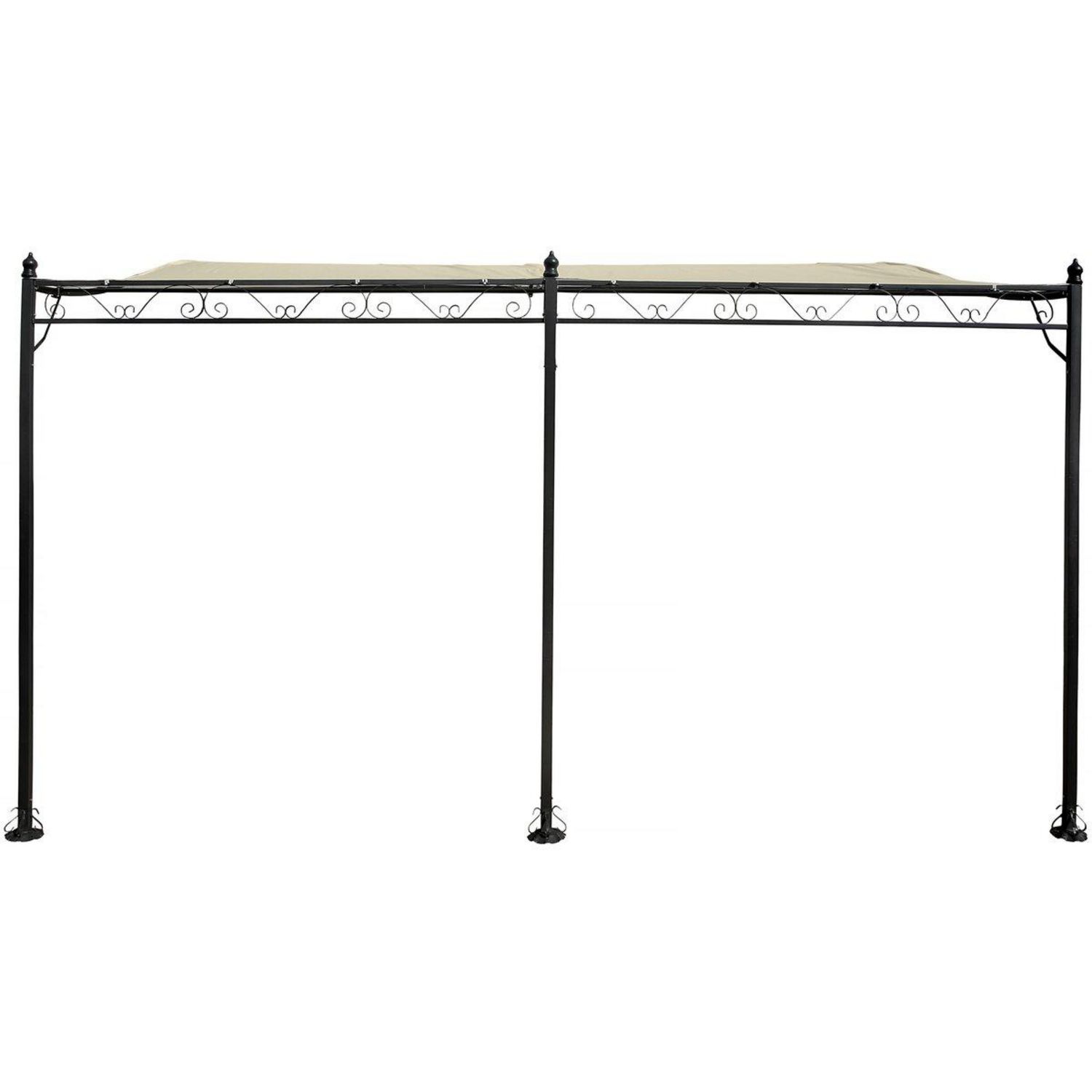 Tonnelle inclinée - Dimensions : 396 x 300 x 215/250 cm - Poids : 23,2 kg -Traitement anti-UV et antirouille - Résistant à l'eau - Métal - Beige.Pergola adossée en métal - 3 x 4 m - Beige Cette pergola avec toit adossé est l'accessoire idéal pour aménager votre espace extérieur avec style et pratic