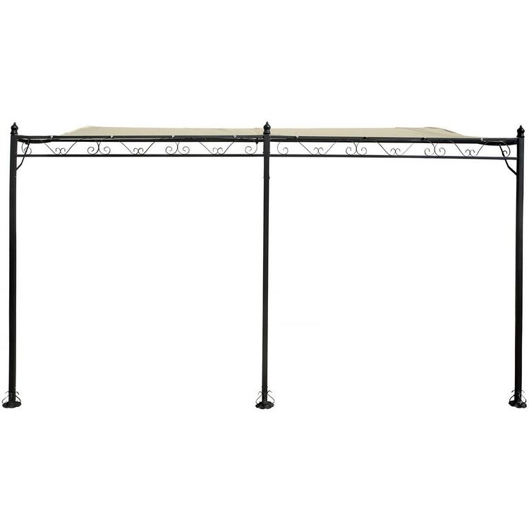 Tonnelle inclinée - Dimensions : 396 x 300 x 215/250 cm - Poids : 23,2 kg -Traitement anti-UV et antirouille - Résistant à l'eau - Métal - Beige.