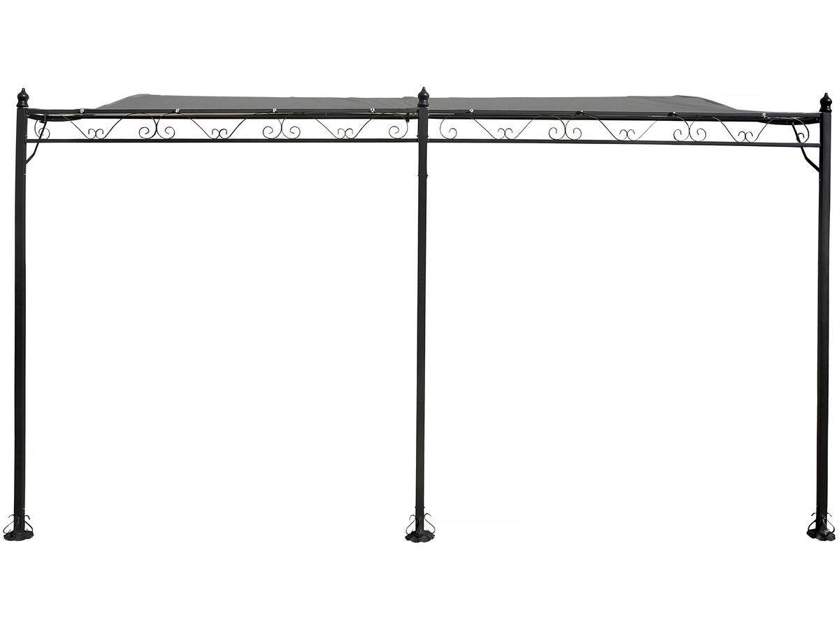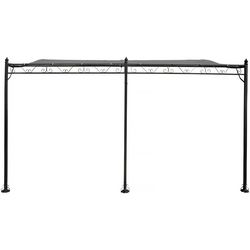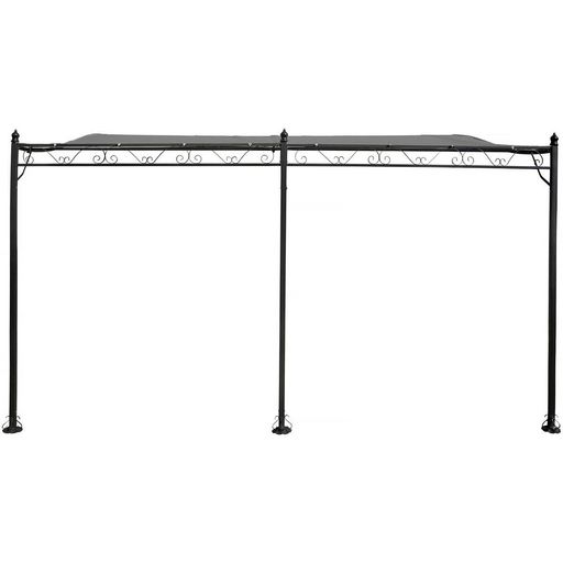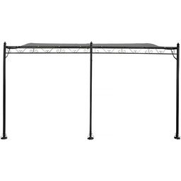 Tonnelle avec toit adossée - Dimension : 396 x 300 x 215/250 cm - Poids : 23,2 kg -Traitement anti-UV et antirouille - Résistant à l'eau - Métal - Gris.
