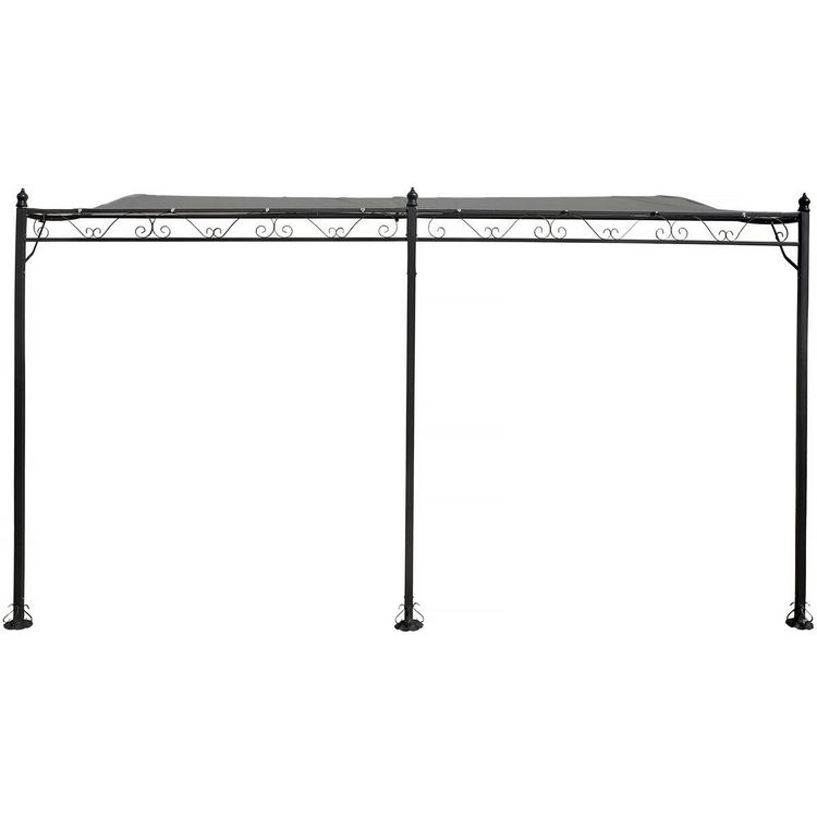 Tonnelle avec toit adossée - Dimension : 396 x 300 x 215/250 cm - Poids : 23,2 kg -Traitement anti-UV et antirouille - Résistant à l'eau - Métal - Gris.Pergola adossée en métal - 3 x 4 m - Gris Cette pergola avec toit adossé est l'accessoire idéal pour aménager votre espace extérieur avecstyle et p