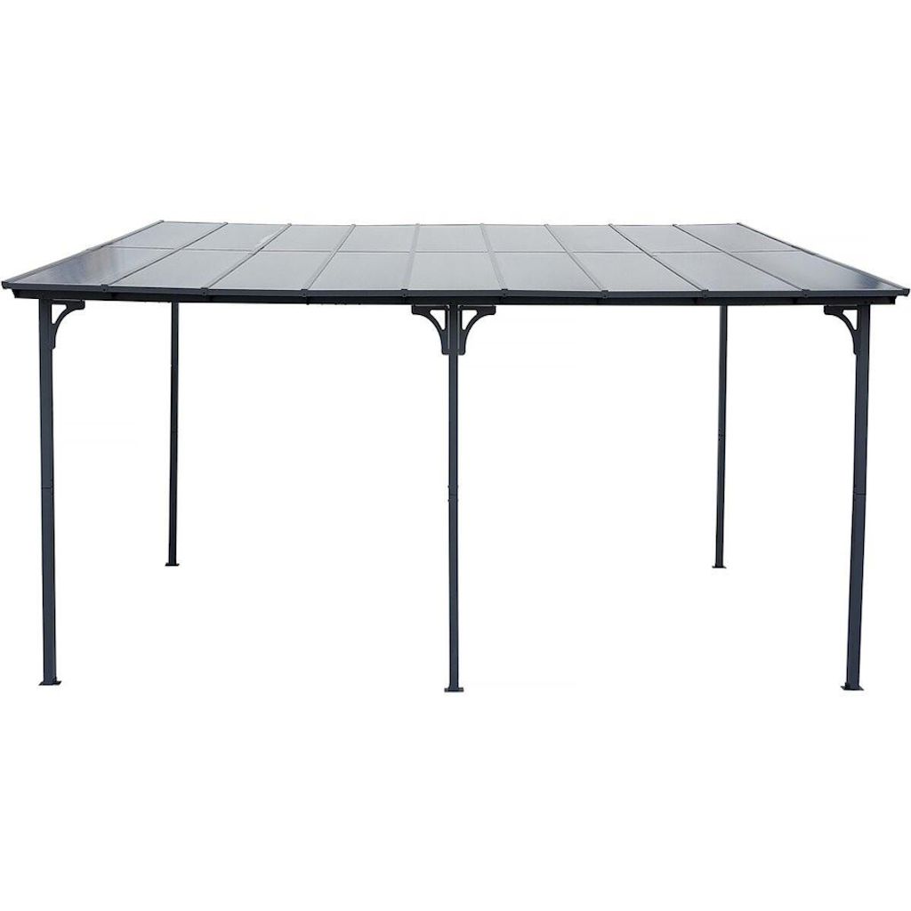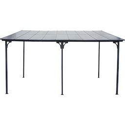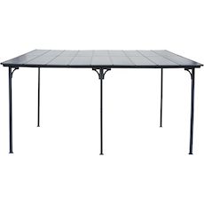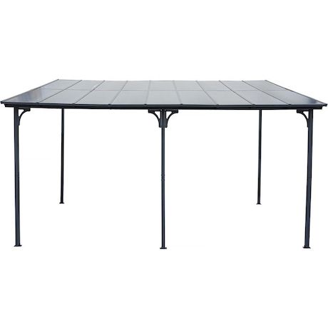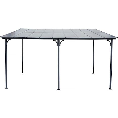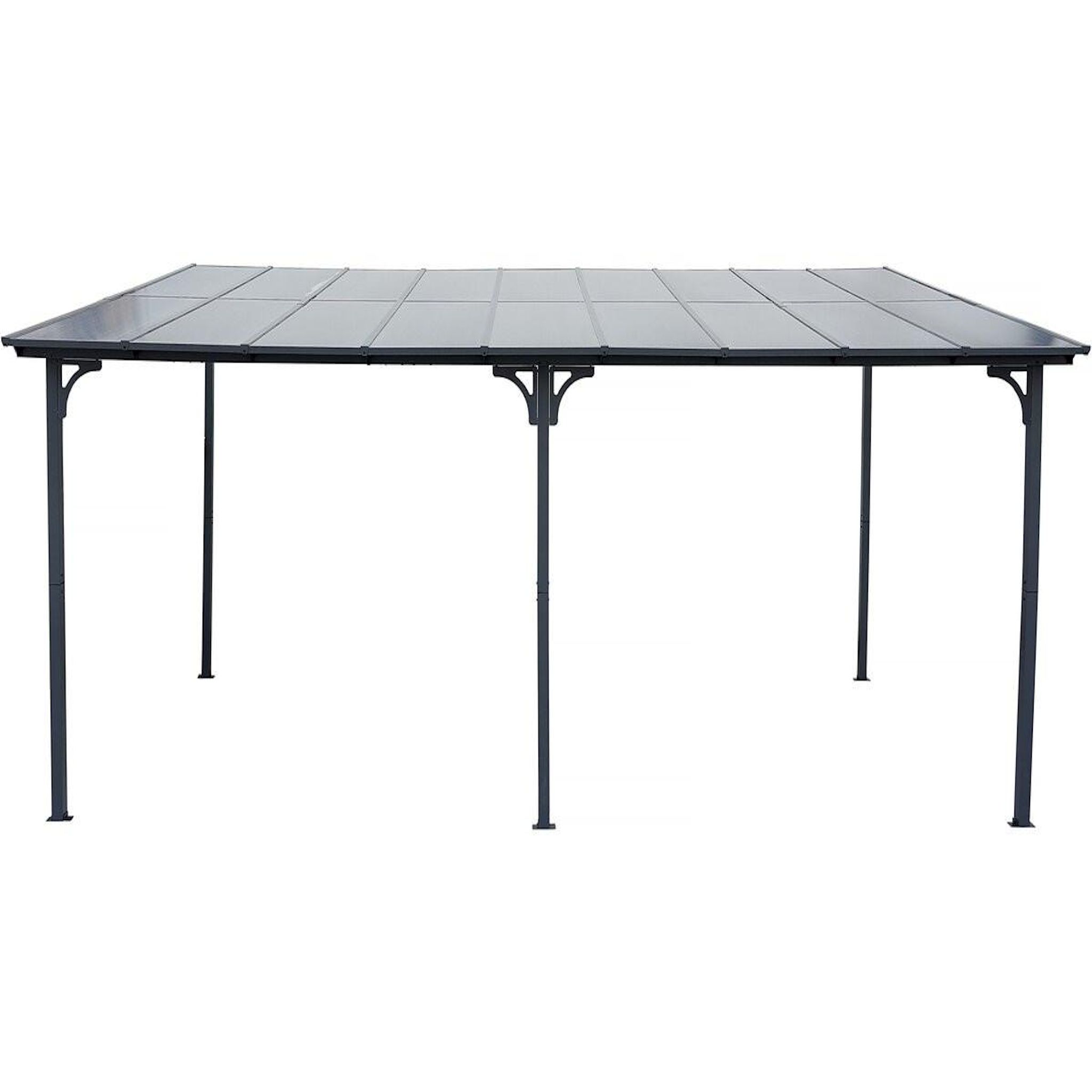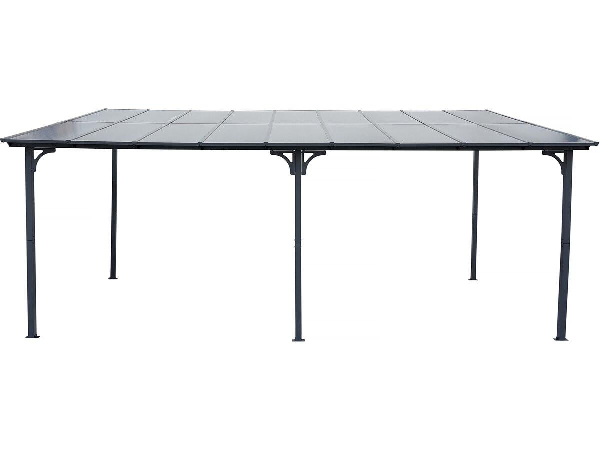 En savoir +Toit terrasse carport adossé avec toiture en polycarbonate Marvin - Dimensions : 545 x 298 x 191/243 cm - Poids : 79 kg - Traitement anti-UV et anti rouille - Résistant à l'eau - Aluminium - Métal - Gris foncé.