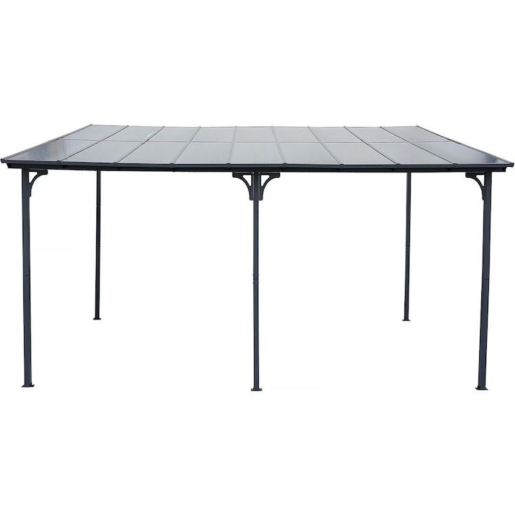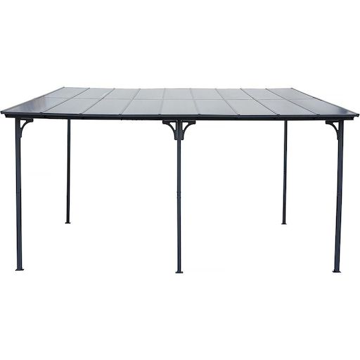 Toit terrasse carport adossé avec toiture en polycarbonate Marvin - Dimensions : 545 x 298 x 191/243 cm - Poids : 79 kg - Traitement anti-UV et anti rouille - Résistant à l'eau - Aluminium - Métal - Gris foncé.Pergola adossée Marvin - 545 x 298 x 243 cm - Gris foncéTransformez votre terrasse en