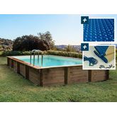 piscine bois du Nord en pin traité autoclave alte IV, FSC, rectangle - Filtration 8.3m3/h - Liner 75/100e - Feutre de fond et de parois - Echelle intérieure inox et extérieure bois - Bâche à bulles 400 µ - Bâche hiver 280 g/m² - Fabrication européenne..