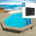 Kit piscine bois du Nord hors sol octogonale allongée - 6.57 x 4.57 x 1.44 m - Pin traité autoclave alte 4 FSC - Liner 75/100 ème - Filtration 6 m3/h - Margelle en pin - Feutre de fond et de parois - 2 sacs de sable - Production Européenne - Pompe à chaleur 6 kw/h inverter PowerLine by Hayward - N